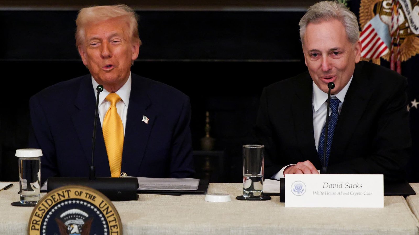 U.S. President Donald Trump sits next to Crypto czar David Sacks at the White House Crypto Summit at the White House in Washington, D.C., U.S., March 7, 2025.