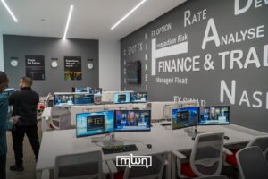 Meanwhile, the Rabat Business School’s trading room shows the school’s emphasis on experiential learning. A connected trading room with Bloomberg terminals gives students access to live data for projects and exercises. The school also showcased a large auditorium of over 600 seats and game rooms for student life and active learning.