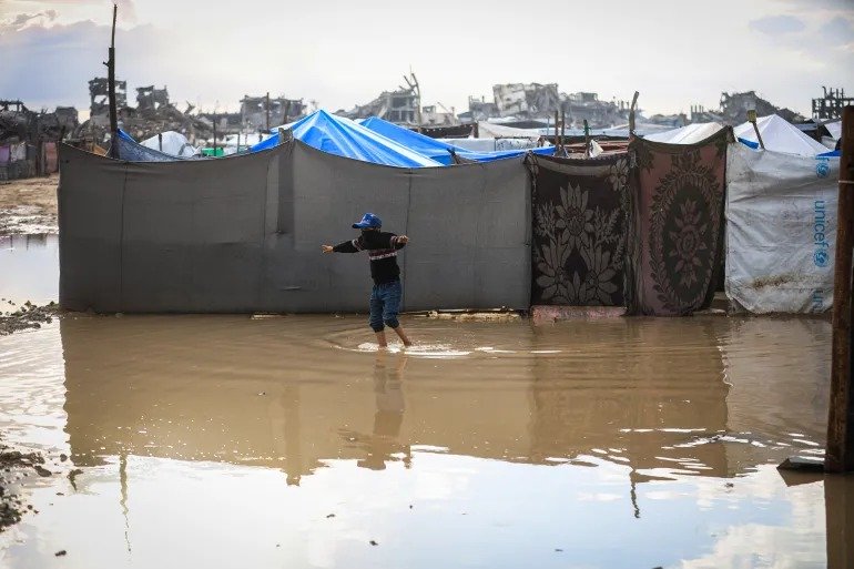 With temperatures dropping and winter storms intensifying, humanitarian agencies say Gaza’s displaced population is facing “life-threatening” conditions.