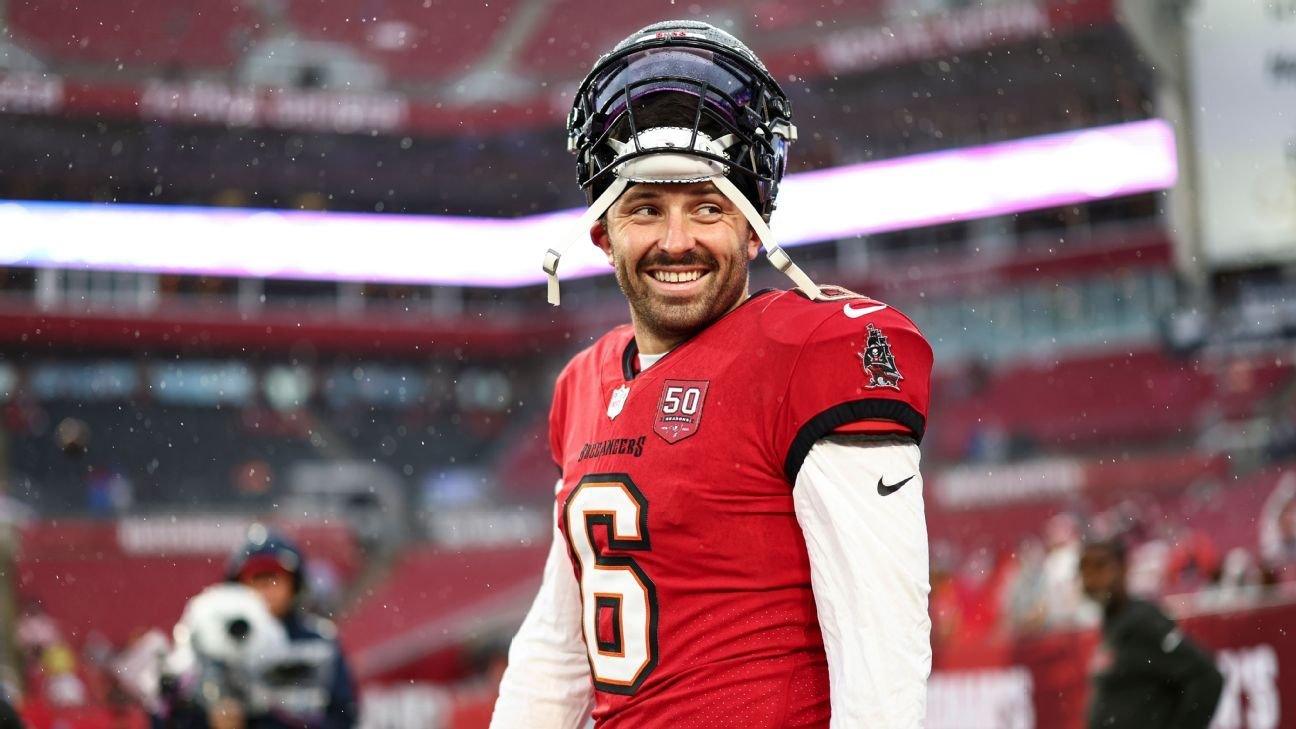 Baker Mayfield, QB, Tampa Bay Buccaneers: Talk about players coming off of a high, Mayfield put together a career effort, throwing for 4,500 yards (QB3) and 41 TDs (QB2) in 2024. His roll may slow this go-around, but it’s unlikely to stall out in Week 1 of 2025. The books are expecting a high-scoring affair at Atlanta, as this is one of three games carrying the second-highest game total of the week at 47.5 points at ESPN BET. That suggests a lot of opportunities and subsequent production for Mayfield.