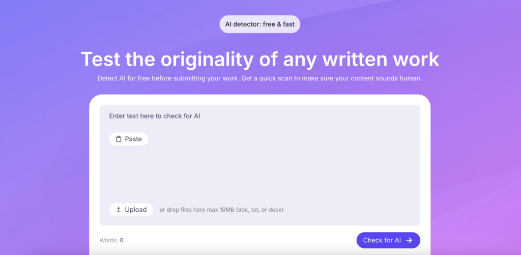 - Paste or upload the text you want to examine