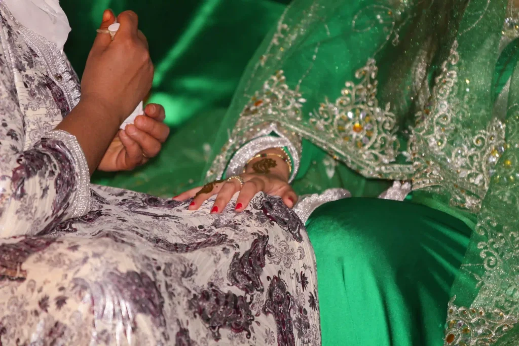 Here’s something many visitors don’t know: you must wear a special belt with your kaftan for wedding events. We call it a mdamma. This ornate belt cinches your waist and gives shape to the flowing dress.