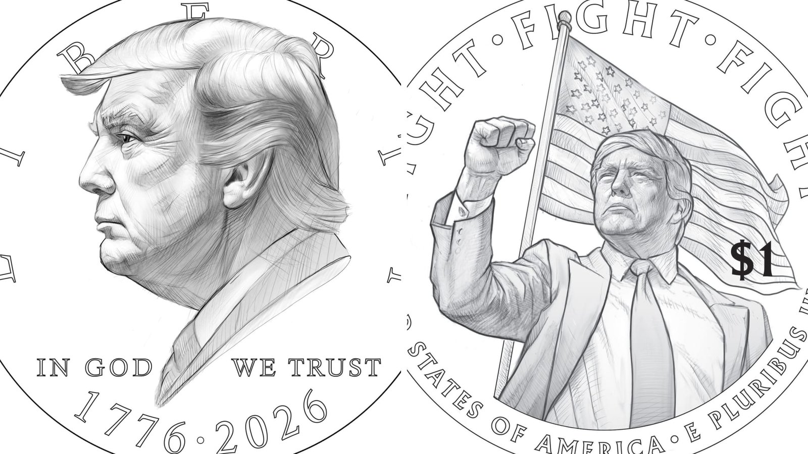 The other side of the coin shows a defiant-looking Trump raising his fist, closely matching the pose he struck moments after surviving an assassination attempt at a 2024 presidential campaign rally in Pennsylvania.