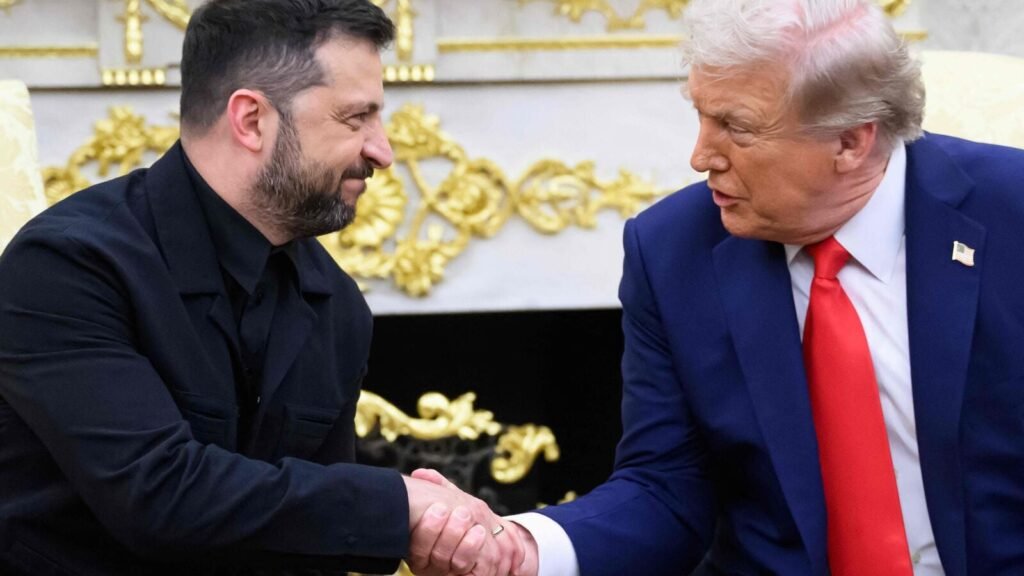 US President Donald Trump on Monday gave a friendly welcome to Volodymyr Zelensky at the White House for talks on the Russia-Ukraine war, raising hopes of a peace deal. Trump expressed delight at Ukrainian President’s black suits as the two leaders shake hands. In a show of affection, Trump put his hand on Zelensky’s back before the two men went inside to the Oval Office, where their last meeting in February ended in disaster.